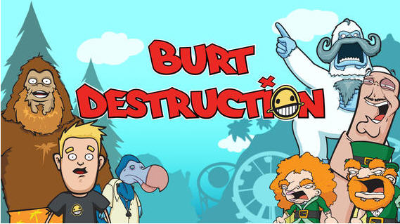 《疯狂伯特Burt Destruction》的画面有着典型的美式漫画风格,即夸张而不精致的人物造型,当然美式风格的动画游戏我们见过很多,似乎没什么大不了的 。这款游戏在画面上最值得称到的是穿插于关卡中的过场动画,不但每个关卡中有剧情引导动画,当你获得一些道具或干掉某些怪物时都会有指引动画出现,这些动画不但丰富了游戏内容,还让玩家在角色扮演时更加身临其境。