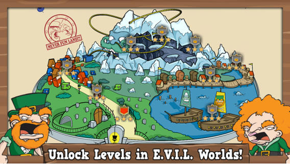 • 疯狂的世界 - 通过各种环境Neverfun的土地Abusement公园和Wormenstein的党岛追捕雪人战!